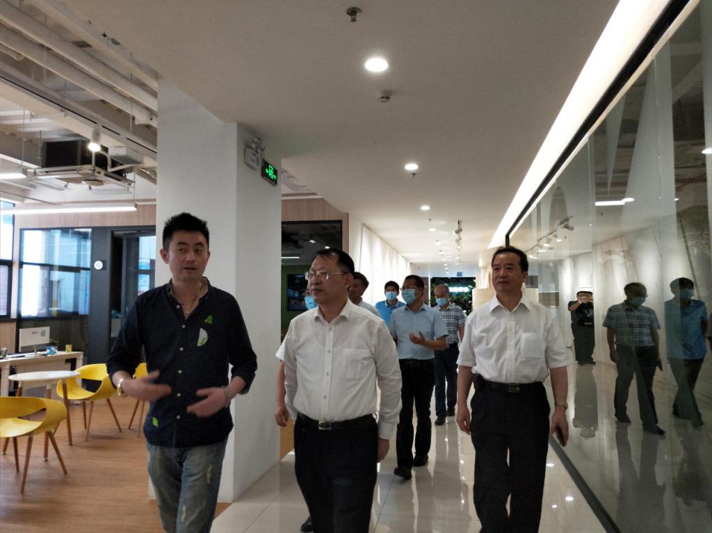 陶立坚(中)、赵海舟(左)、王强东(右)参观酷狗公司